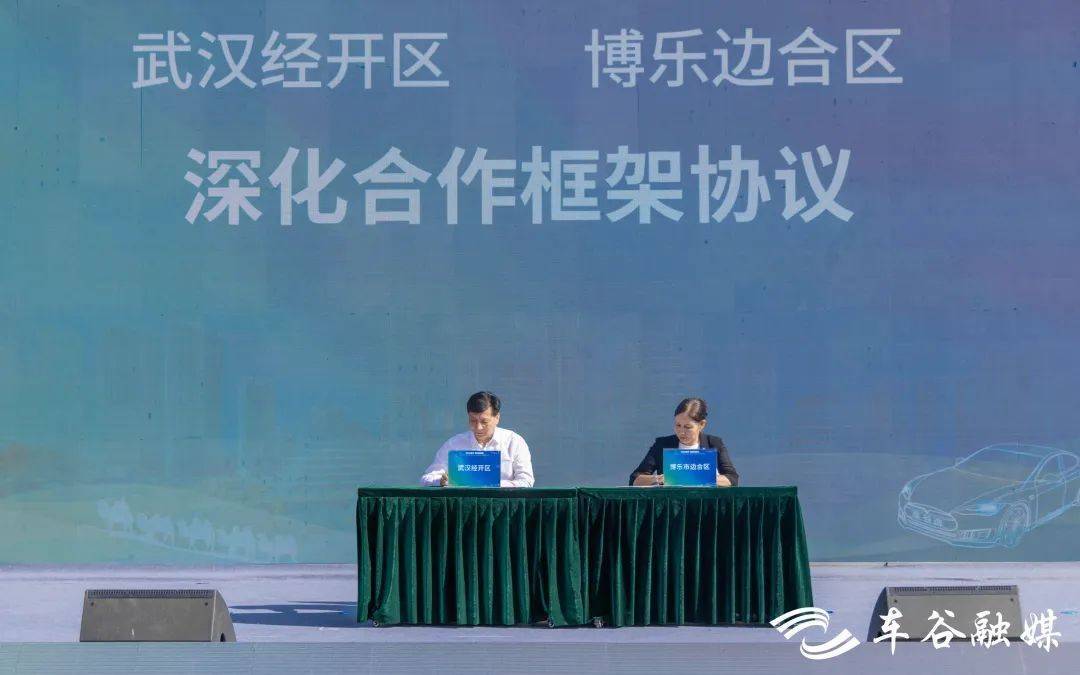 当天,武汉经开区与博乐边合区签订深化合作框架协议。双方将进一步拓展合作新空间,推动两地协同发展迈上新台阶。