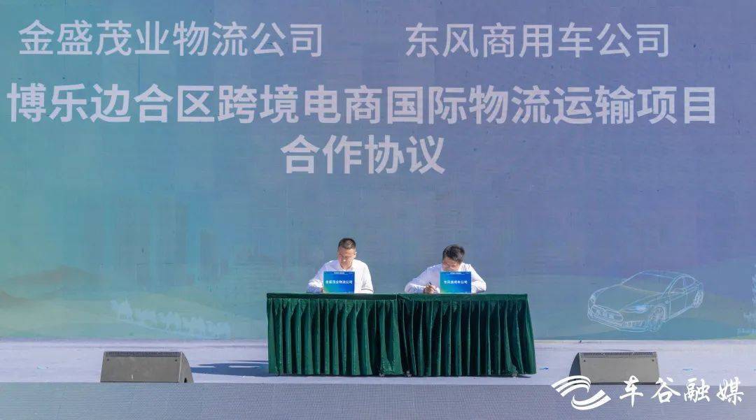 博乐市边合区金盛茂业商贸物流有限公司与东风商用车签订博乐边境经济合作区跨境电商国际物流运输项目合作协议,将共拓跨境电商物流新通道,助力“武汉造”“车谷造”加速驶向亚欧市场。