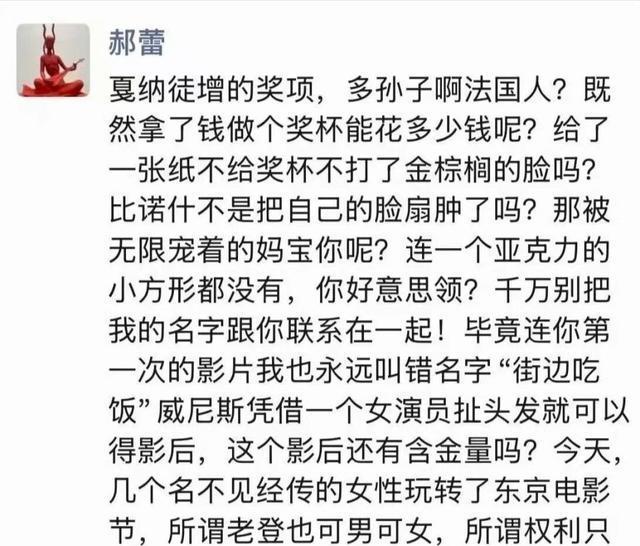 除此之外,影片上映当天,演员郝蕾的一条朋友圈截图也引发了热议。