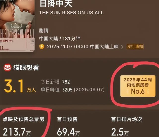 有票房预测机构《日掛中天》最终的票房应该在2500万~4000万之间,和大家此前的预期相差甚远。